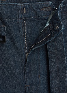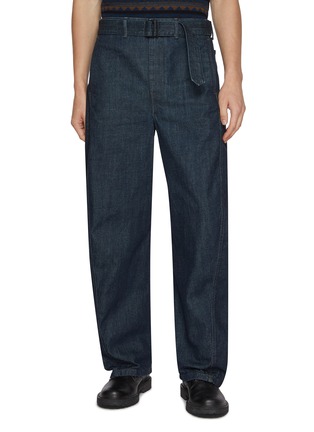 Anchored in LEMAIRE’s utilitarian elegance, these heavy indigo jeans are shaped with a subtly twisted leg that lends movement and quiet character. The integrated belt refines the waistline, making them ideal with sleeveless knits or crisp shirts for everyday structure.