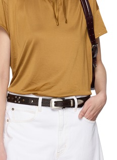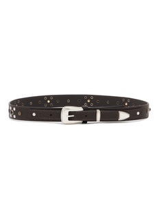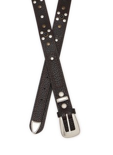 Elevate your wardrobe with this LEMAIRE studded leather belt, a perfect blend of edgy sophistication and timeless elegance. The rich, textured leather is adorned with metallic studs and grommets, while the polished silver-tone buckle adds a refined touch. Ideal for both casual and polished looks, this belt effortlessly combines bold detail with understated luxury.