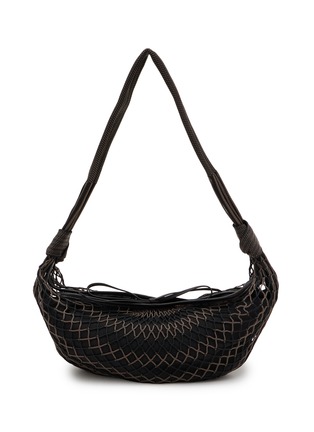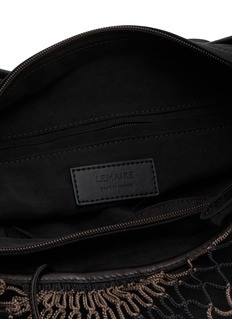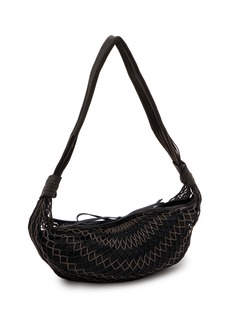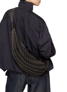 This LEMAIRE bag combines effortlessly chic design with practicality. Featuring a distinctive woven texture, this piece is crafted with a unique black leather that creates a sophisticated, tactile appeal. The crescent shape of the bag complements its streamlined aesthetic, while the intricate weaving technique not only adds visual interest but also enhances durability. Its slim, adjustable strap allows for comfortable shoulder wear, making it perfect for day-to-night versatility.