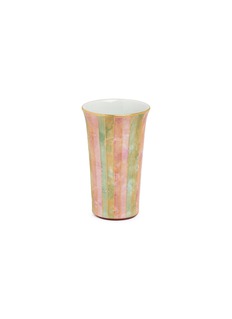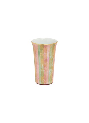 This elegant ceramic cup showcases exceptional Japanese craftsmanship, crafted using the technique of kinrade to create a sophisticated linear pattern. The lustrous glaze produces subtle variations in tone and texture, giving each piece distinctive character. The artisanal hand-painted intricate patterns in vivid enamels, then overlay them with gold, creating surfaces that glitter like woven silk.