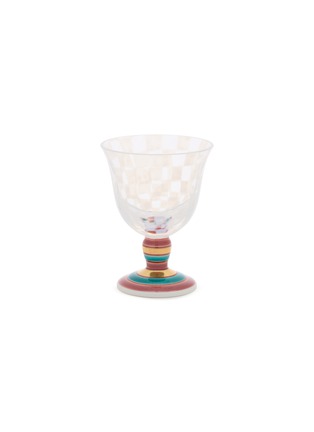 Experience the fusion of traditional elegance and vibrant modernity with this exquisite sake glass. Designed to enrich your sake tasting, this glass boasts a striking iridescent finish that beautifully reflects light, enhancing the visual appeal of your beverage. The stem is artistically adorned with bold stripes in red, green, and yellow, offering a contemporary twist to its classic shape.