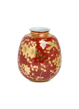 Immerse yourself in the elegance of traditional artistry with this exquisite vase. Featuring a rich, crimson background adorned with intricate gold floral patterns and delicate floral motifs, this piece exudes sophistication and charm. The lustrous gold detailing not only highlights the craftsmanship but also adds a touch of opulence to any space.