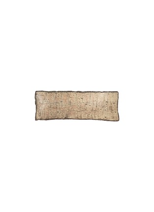 This plate epitomizes rustic elegance with its elongated, rectangular shape and subtly speckled surface. The design features a unique, linear etching that gracefully spans its length, adding a touch of delicate artistry. The natural, muted colour palette accentuated by the darkened edges lends an organic feel, making this plate a perfect canvas for showcasing culinary creations.