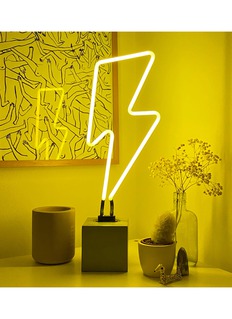 Handcrafted with passion, this tabletop neon sign features a neon signage set atop a minimalist concrete base. Each piece is individually made to cast a warm, retro glow that transforms any space.