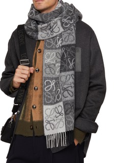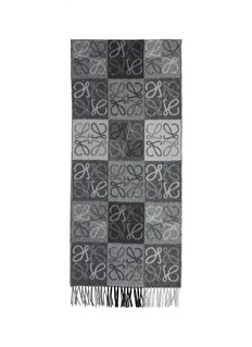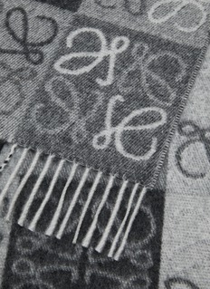 Indulge in the elegance of the LOEWE wool scarf, featuring a striking monochromatic design with the iconic Anagram pattern. This scarf is beautifully crafted from premium wool, offering both exceptional warmth and a soft touch. The sophisticated grey palette is versatile, making it a perfect match for any outfit, while the playful Anagrams add a touch of designer charm. Finished with fringed edges for a traditional touch, this scarf is a timeless accessory that combines luxury with practicality, making it an essential for the style-conscious individual.