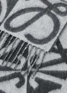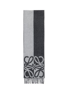 Wrap yourself in the luxurious warmth of this Loewe wool scarf, a perfect blend of style and comfort. Its elegant gray and black color palette is complemented by the iconic Loewe anagram design, adding a touch of sophistication. Crafted from soft, premium wool, this scarf provides both warmth and a smooth texture, ensuring comfort during cooler days. With its generous length and fringed ends, it offers various styling options, making it a versatile addition to any winter wardrobe.