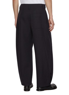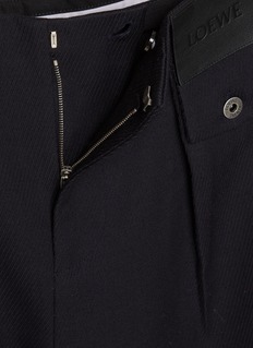 These wool twill trousers capture LOEWE’s refined ease, cut in a softly structured cavalry weave that enhances their fluid, relaxed silhouette. Sharp front pleats and a discreet embossed leather patch elevate the everyday uniform, pairing effortlessly with crisp shirting or sculptural knitwear.