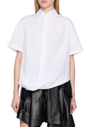 LOEWE's shirt lends a modern spin to sartorial dressing with its draped style. The boxy cut frames the silhouette, offering a relaxed yet refined aesthetic.