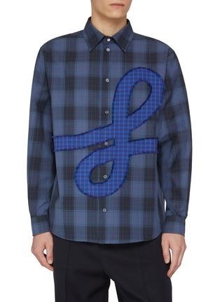 LOEWE's statement shirt showcases an oversized fil coupé L motif spanning the front and back over a refined check pattern. The lightweight design features a classic collar, button-through closure, and long sleeves. A bold expression of the house's signature craftsmanship that elevates everyday shirting.