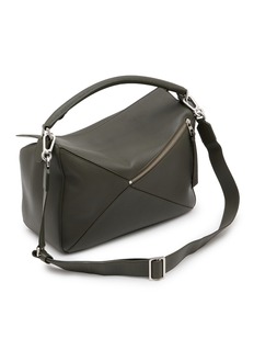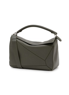 LOEWE's iconic Puzzle bag showcases the Spanish house's mastery of architectural construction with its distinctive geometric paneling that seamlessly folds and expands. The curved top handle and refined silver-tone hardware deliver sophisticated versatility, while the sculptural silhouette transitions effortlessly from day to evening.