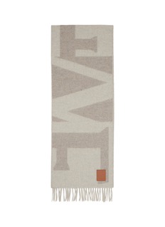 Wrap yourself in the luxurious embrace of the LOEWE wool scarf, a masterpiece of minimalist design and exceptional warmth. This scarf features an elegant geometric pattern in soft, neutral shades that exude sophistication and modernity. Crafted from the finest wool, it offers unparalleled comfort and insulation against the chill. The iconic LOEWE leather patch adds a distinctive touch of brand identity, making this scarf not just a functional accessory but also a statement of fashion-forward style. Perfect for elevating any winter ensemble, it promises to be a timeless addition to your wardrobe.