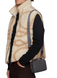 Refine your style with the epitome of luxury encapsulated in Loewe's black leather camera bag. Expertly crafted with premium textured leather, this compact accessory promises durability and a sophisticated aesthetic. The sleek silhouette is enhanced by a subtle embossed Anagram, showcasing Loewe's iconic branding with understated elegance. Featuring a sturdy zipper closure and an adjustable strap for versatile carrying options, this camera bag is not only practical but also impeccably stylish.