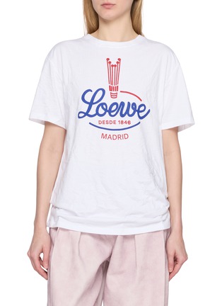 LOEWE presents a classic crewneck T-shirt with a retro-inspired graphic logo for a hint of nostalgia. The relaxed fit silhouette with short sleeves and vintage-style branding delivers effortless elegance, perfect for elevated casual dressing.