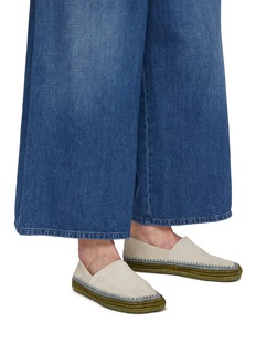 LOEWE reimagines artisanal minimalism in these suede slippers, where the signature petal toe softens each step and raffia embroidery whispers of slow summer days. A tactile expression of comfort, they're ideal for effortless elegance in balmy resort escapes or gallery strolls.