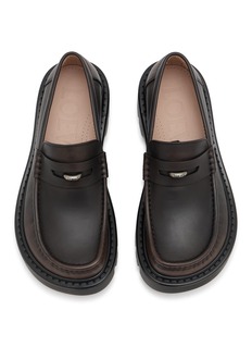 Discover the epitome of modern elegance with Loewe's black leather loafers, designed to blend classic sophistication with contemporary flair. These loafers are meticulously crafted from smooth, high-quality leather, ensuring both comfort and durability. The chunky, yet sleek rubber sole adds a modern twist, providing robust support and a fashionable edge.