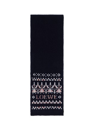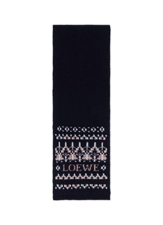 Wrap yourself in cozy luxury with LOEWE’s intricately knit scarf, featuring a striking pixelated motif and the iconic LOEWE logo. The ultra-soft black wool and delicate floral pattern add a touch of modern charm, making it a perfect blend of warmth and style for the cooler seasons. A must-have accessory for effortless sophistication.
