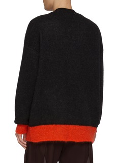 Softly brushed and playfully detailed, this mohair-blend cardigan from LOEWE channels Louis Wain’s surreal “Futurist Cats” through a charming front embroidery. Its oversized silhouette is anchored by vivid contrast cuffs and hem, bringing a burst of colour to layered winter looks while maintaining a relaxed, tactile elegance.
