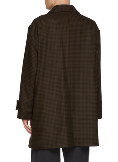 Rendered in a refined houndstooth wool, this Mackintosh coat reimagines British tailoring through a relaxed yet elegant lens. The Humbie silhouette is defined by its structured collar, clean front lines and adjustable cuff tabs — a timeless outer layer that transitions effortlessly from city to countryside.