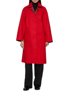 Embrace timeless elegance with Mackintosh's classic red tailored coat. This exquisite piece features a sharp collar with a hint of plaid detailing, adding a touch of traditional charm. Its streamlined silhouette and vibrant red hue make it a standout addition to your wardrobe, perfect for both formal and casual occasions.