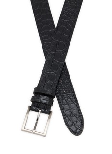 An emblem of quiet authority, this Eastwood belt is crafted from genuine crocodile leather, revealing a rich, tactile grain unique to every piece. The brushed nickel buckle lends a modern gleam, while the leather-lined backing ensures enduring comfort. A refined accent for tailored suiting or elevated weekend ensembles.