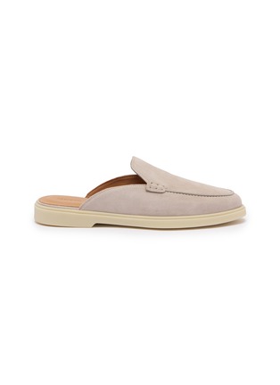 Magnanni presents sophisticated loafer mules with soft napped finish and contrast topstitching for refined casual elegance. The backless slip-on silhouette with apron-toe construction and cushioned sole delivers effortless Spanish craftsmanship, while tonal monochrome design and relaxed profile create a versatile essential bridging indoor leisure and polished everyday dressing with understated luxury.