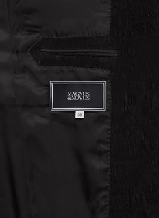 Magnus & Novus redefines evening elegance with this jacquard stretch jacket, woven from a rich wool blend for subtle texture and flexibility. The shawl lapel adds a touch of sophistication, while its sculpted silhouette transitions seamlessly from dinner to formal occasions.