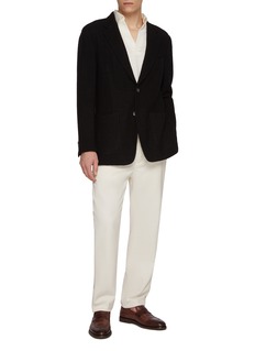 An elevated essential with a modern ease, this Magnus & Novus open-collar shirt is spun from a refined blend of wool, Tencel, and cotton. Its clean lines and fluid drape lend understated sophistication—ideal for warm-weather tailoring or casual elegance under a summer blazer.