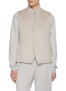 Woven entirely from pure cashmere, this vest by Magnus and Novus is a study in refined minimalism. The clean front closure and sculpted stand collar lend it a contemporary elegance, while the soft handfeel ensures lasting comfort — perfect layered over shirts or under tailoring.