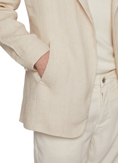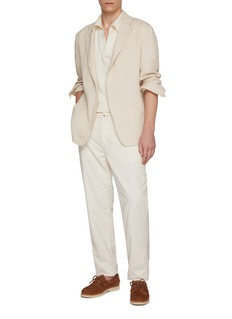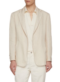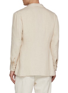 Crafted from Solbiati’s renowned linen, this striped blazer epitomises laid-back sophistication. The lightweight weave lends natural texture and breathability, while its unstructured silhouette captures effortless Italian ease—ideal for warm-weather tailoring or resort edits.