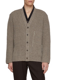 Maison Margiela imbues artisanal imperfection into this wool-cotton cardigan, defined by ribbed texture and exposed frayed stitches tracing the pocket. A relaxed silhouette with button closure lends timeless ease—ideal for layering with crisp shirting or tees.