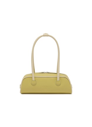 This Mini Soft Baguette bag from Margesherwood features a timeless combination of light green and off-white leather piping, offering a fresh take on classic design. Perfect for adding a pop of colour to your everyday wardrobe.