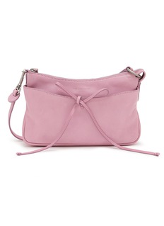 Sculptural simplicity meets functional elegance in this leather pochette, its tied ribbon closure adding a playful, artistic touch. The sleek silhouette and detachable strap make it a versatile statement for modern sophistication.