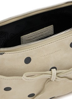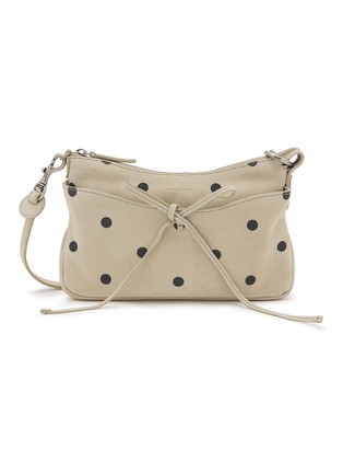 Sculptural simplicity meets functional elegance in this leather pochette, its tied ribbon closure adding a playful, artistic touch. The sleek silhouette and detachable strap make it a versatile statement for modern sophistication.