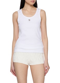 A quiet declaration of sentiment, this ribbed tank by MARGESHERWOOD is defined by its minimalist cut and a delicate heart pendant resting close to the skin. Lightly fitted and endlessly versatile, it layers seamlessly under tailoring or stands alone for sunlit weekends and pared-back styling.