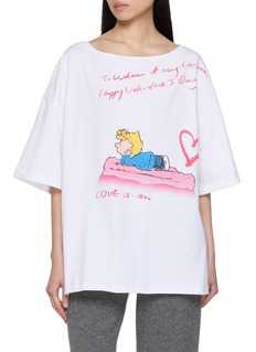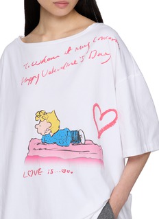 A playful expression of self-love and sentimentality, this off-shoulder T-shirt by MARGESHERWOOD channels Peanuts’ Valentine spirit through hand-drawn graphics and handwritten notes. Cut from stretch cotton, it drapes softly for an effortless, relaxed mood.