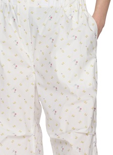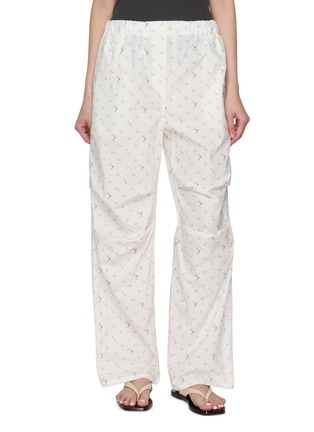 Infused with a lighthearted spirit, these printed pants by MARGESHERWOOD reinterpret loungewear through a relaxed, everyday lens. Cut from airy cotton and finished with roll-up hems, the silhouette drapes softly—ideal for off-duty days, travel, or effortless summer layering.