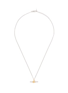 Experience the harmony of dual tones with the MISSOMA Silver and Gold-Tone Knot Pendant Necklace. This refined piece highlights a delicate silver chain, gracefully adorned with a chic gold-tone knot pendant embracing a silver bar. This marriage of metals brings a modern and sophisticated twist to a classic design, making it an ideal accessory to enhance any outfit. Perfect for those who appreciate the subtle blending of elegance and contemporary style, this necklace is both versatile and striking.