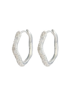 Echoing the fluidity of molten metal, these sculptural hoops shimmer with pavé-set crystals reminiscent of freshly fallen snow. Their polished silver tone lends a cool, modern edge — effortlessly elevating any look from casual layers to evening refinement.