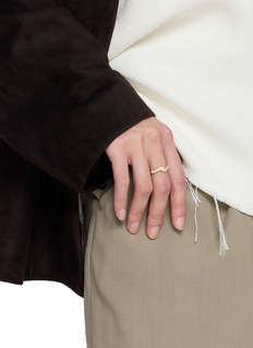 Defined by its fluid silhouette and molten-inspired texture, this stacking ring glows with the warmth of 18K gold vermeil. The pavé-set crystals glisten like freshly fallen snow, balancing organic curves with refined brilliance — a timeless piece to elevate any jewellery stack.