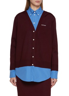 MIU MIU Bonded Poplin Shirt Layered Knit Cardigan