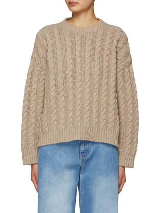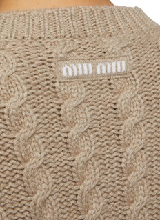 This knit sweater from Miu Miu is the ultimate a cosy addition to your winter wardrobe. Featuring a classic cable knit, this piece adds a touch of texture and depth into your curations. Perfect for layering over your shirts.