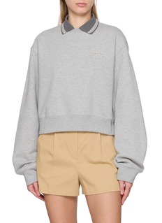 Soft structure meets collegiate charm in this Miu Miu sweater, crafted in mélange felpa with a cropped silhouette that gently skims the waist. The contrast collar and subtle embroidered logo lend a refined, playful note—perfect with tailored shorts or layered over shirting for polished off-duty moments.