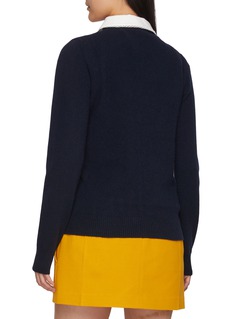 Clean lines meet subtle charm in this knit cardigan, shaped by Miu Miu’s quietly subversive elegance. Defined by a classic round neckline and discreet logo embroidery, it pairs effortlessly with tailored skirts or denim for refined everyday dressing, from office hours to off-duty moments.