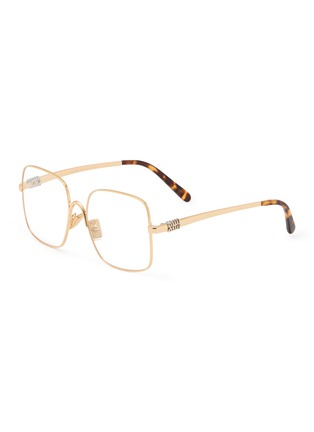 Elevate your look with Miu Miu's optical glasses. Crafted from sleek gold-tone metal with distinctive square frames, these glasses blend modern edge with timeless style, perfect for enhancing any ensemble.