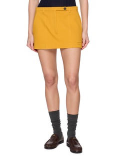Stripped back yet assertive, this Miu Miu mini skirt draws from classic menswear tailoring, reworked through a rib-knit construction for a sharp, modern finish. Clean lines and subtle structure give it versatility—style with a slim knit or crisp shirt for contemporary, confident dressing.