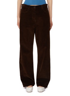 Rooted in a ’90s menswear attitude, these corduroy pants balance nostalgic texture with contemporary ease. The relaxed silhouette is softened by plush cotton corduroy, while a contrasting crust leather logo patch lends a quietly iconic finish—ideal styled with ribbed knits or cropped tops.