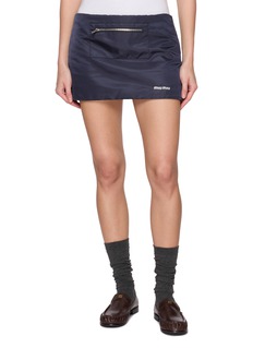Rooted in ’90s utilitarian codes, this Miu Miu mini skirt channels a sporty yet polished attitude through its technical gazar fabrication. Clean lines are punctuated by a front zip pocket, making it an effortless pairing with tanks, knits, or tailored layers for off-duty city dressing.