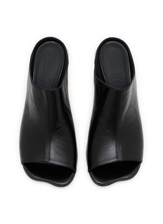 MM6 Maison Margiela delivers understated sophistication with these streamlined leather mules. The smooth noir leather upper sits atop a transparent block heel, whilst the clean silhouette embodies contemporary minimalism. A masterclass in refined simplicity.