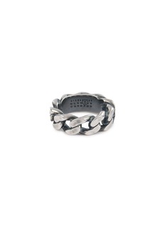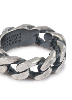 MM6's curb-chain ring reimagines classic jewelry codes with sculptural, oversized links. The signature numeric logo engraved inside the band adds a distinctive brand signature, while the chunky construction delivers bold, architectural presence. A statement piece that brings contemporary edge to your jewelry edit.