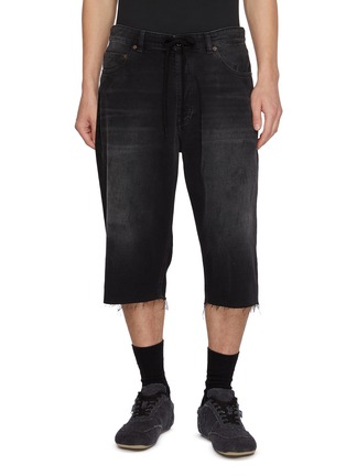 Distressed and deliberately undone, these denim shorts explore MM6 Maison Margiela’s subversive approach to everyday staples. The light-wash finish and raw-cut hems contrast with a drawstring waist, lending ease to structured denim—ideal for relaxed styling with tanks or oversized shirts.